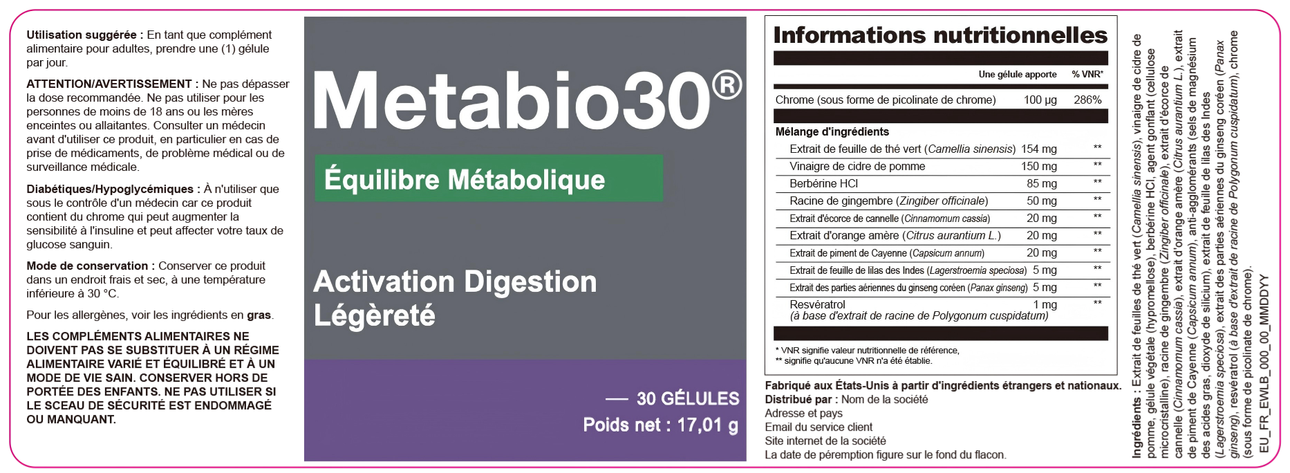 Chaque capsule Metabio30 est conçue avec des ingrédients naturels premium, dans une usine certifiée de l’UE. Résultat : une formule sûre, puissante et sans compromis sur la qualité.